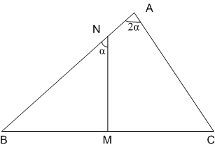 Question 1: The average of angles a and b of triangle ABC is equal to 55o. What is the value of angle c? 60o 65o 70o 75o Question 2: Triangle ABC has MN parallel to BC and AM/AB = 2/3. What is the ratio between the area of triangle AMN and the area of triangle ABC? 2/3 4/9 1/2 1/3 Question 3: What is the length of the segment BD in the figure below, if AD is 6cm? Figure not drawn to scale 10cm 11cm 12cm 13cm Question 4: What percentage of the area of the triangle below is shadowed? All triangles are equilateral. 60% 62.5% 65% 67.5% Question 5: A circle of center O is inscribed in a right isosceles triangle, ABC as seen in the figure above. If side AC is tangent to the circle in point T and the radius of the circle is r, which of the following approximates best the length of the segment BT? 2.41r 2.5r 2.62r 2.75r Question 6: In the picture given below, D is a point on the side BC of triangle ABC. Determine which of the following given assumptions are enough to prove that the ABD and ACD triangles are similar. AD is the altitude of triangle ABC triangle ABC is equilateral and AD is its median triangle ABC is equilateral ∠ABC = ∠ACB Question 7: In triangle ABC, MN is the mediator of segment B (MN ⊥ BC and BM = MC). If ∠BNM = α and ∠BAC = 2α, calculate the ratio between the lengths of segments MN and AC as a function of α. Press the Submit button to see the results.