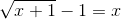 In most cases, a square root in an equation can be eliminated by squaring. However, this method can sometimes produce solutions that don't work named extraneous roots, so all solutions need to be verified. If the equation has two or more roots, the squaring process can be repeated for each of them. Example: Find the solutions of the following equation: Both x = 0 and x = -1 check in the original equation. Find the solutions of the following equations: 1: x = 0 x = 2 and x = -2 x = 2 and x = -3 x = 2 2: x = 4 x = 4 and x = -3 x = 4, x = -4 and x = -3 x = 28 3: x = 1 x = 16 x = 4 x = 3 4: x = 2 x = -4 x = 0 x = 4 5: x = -2 and x = 7 x = -2 x = 7 x = 2 and x = 4 6: x = 0, x = -2 and x = 2 x = 0, x = -4 and x = 4 x = -4 and x = 4 x = 0 and x = 4 7: x = 12 x = -1 x = 15 x = 1 8: x = 4 x = -3 x = 5/3 x = 25/9 Press the Submit button to see the results.